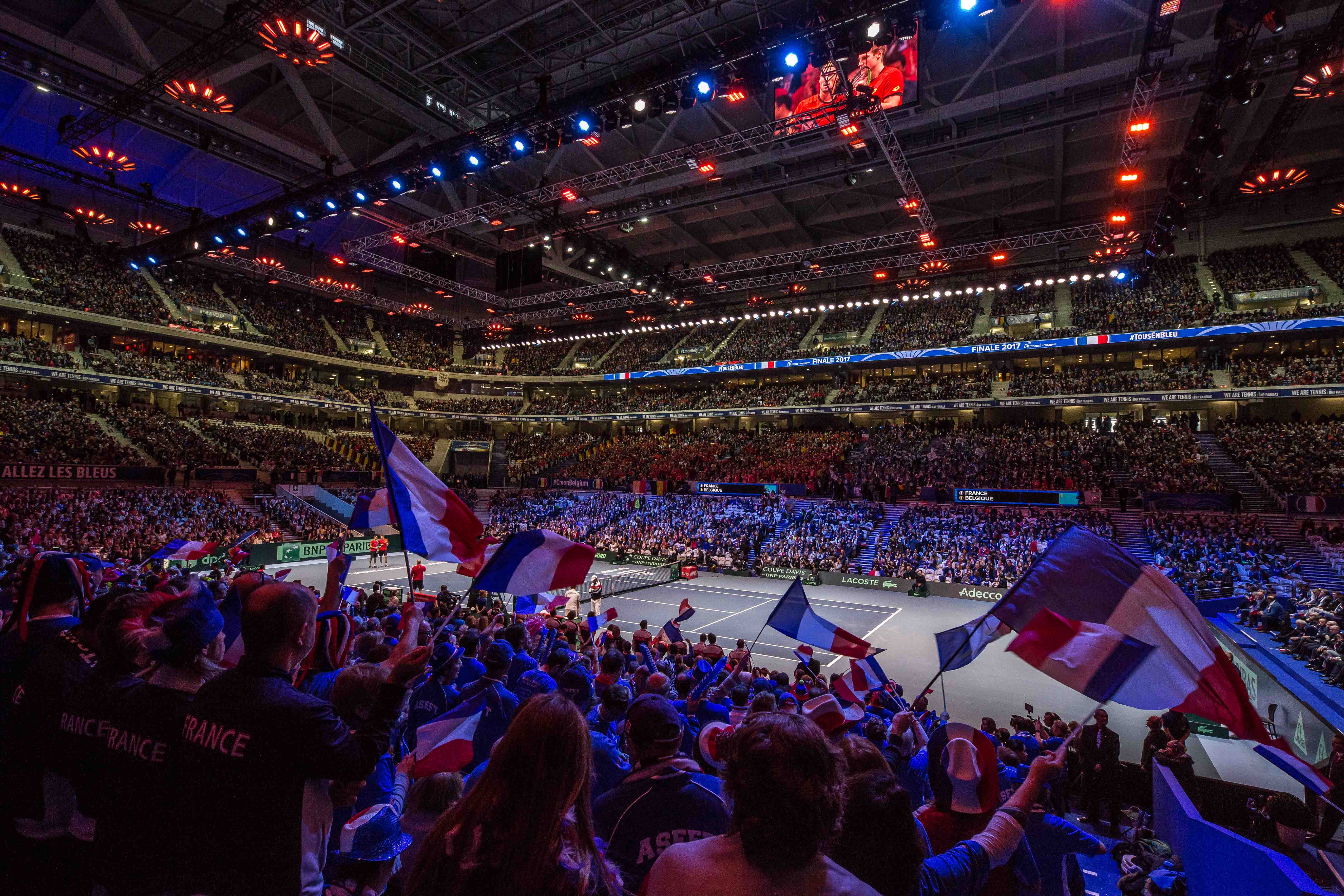 Les 24, 25 et 26 novembre 2017, le Stade Pierre-Mauroy s’est transformé pour la troisième fois de son histoire en court de tennis, cette fois-ci pour la finale de Coupe Davis France-Belgique. Une finale avec un enjeu de taille pour la France qui venait de nouveau tenter de soulever le saladier d'argent après 16 ans d'attente ! Les Bleus se retrouvaient pour cela face à leurs voisins belges, jamais vainqueurs de la prestigieuse compétition et arrivés seulement 2 fois en finale, en 1904 et 2015.
